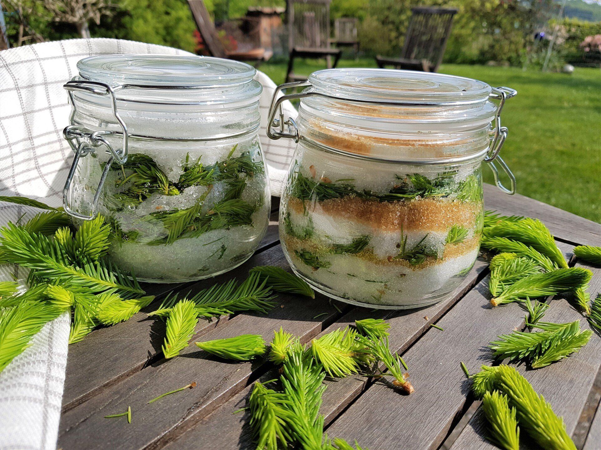 Maiwipfel (frische Fichtenspitzen, die im Mai gesammelt werden) enthalten wertvolle ätherische Öle, Harze sowie reichlich Vitamin C.